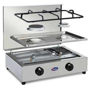 Dvojni plinski kuhalnik CP Parker z pokrovom je izdelan iz nerjavečega jekla. Zgornji del kuhalnika je odstranljiv in vsebuje varnostni ventil, gorilniki so izdelani iz zlitine Pyral N2, emajliranim razpršilcem plamena in rešetko. Je izjemno uporaben pripomoček za kuhanje, ki ga lahko uporabljate, tako na prostem kot tudi v notranjih prostorih. Je enostaven za uporabo in čiščenje.
