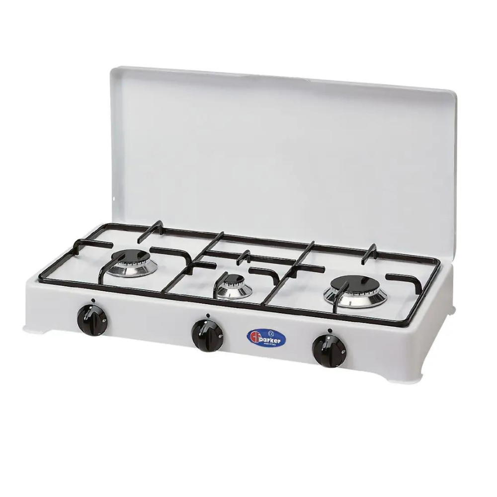 CP Parker trojni plinski kuhalnik s pokrovom je opremljen z varnostnim ventilom, gorilniki so izdelani iz zlitine Pyral N2, emajliranim ločevalnikom plamena in rešetko. Plinski kuhalnik s tremi gorilniki je uporaben, ker omogoča kuhanje za več jedi hkrati, kar prihrani čas v kuhinji. Je praktičen in enostaven za prenos, zato ga lahko samostojno premikate po kuhinji ali zunanjih prostorih. Prav tako je primeren za srednje velike družbe, saj je dovolj zmogljiv za pripravo obrokov do 6 oseb. Enostaven za čiščenje in uporabo.